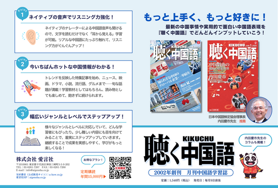『聴く中国語』賞・・・・・・2名/『聴く中国語』半年分進呈